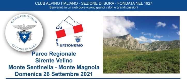 Per accordi presi tra gli accompagnatori, per domenica 26 settembre viene proposta l’escursione a Monte Sentinella e Magnola in sostituzione della escursione al Monte Capraro (PNALM). Vi ricordo di venire muniti con le autodichiarazioni. Grazie. Buona Escursione a tutti i partecipanti. Per le disposizioni ANTI-COVID e riconfermate dalla sede Centrale 2021, di seguito troverete i link per visionare e/o scaricare: – il modulo di AUTODICHIARAZIONE OBBLIGATORIA che va riempito, da inviare o portare con se alla partenza dell’escursione da consegnare all’accompagnatore, tale documento dovrà restare in sezione (30 giorni) per