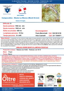 Escursione di sabato 24 luglio – “NOTTURNA” Campocatino- Mte. La Monna (M.ti Ernici)