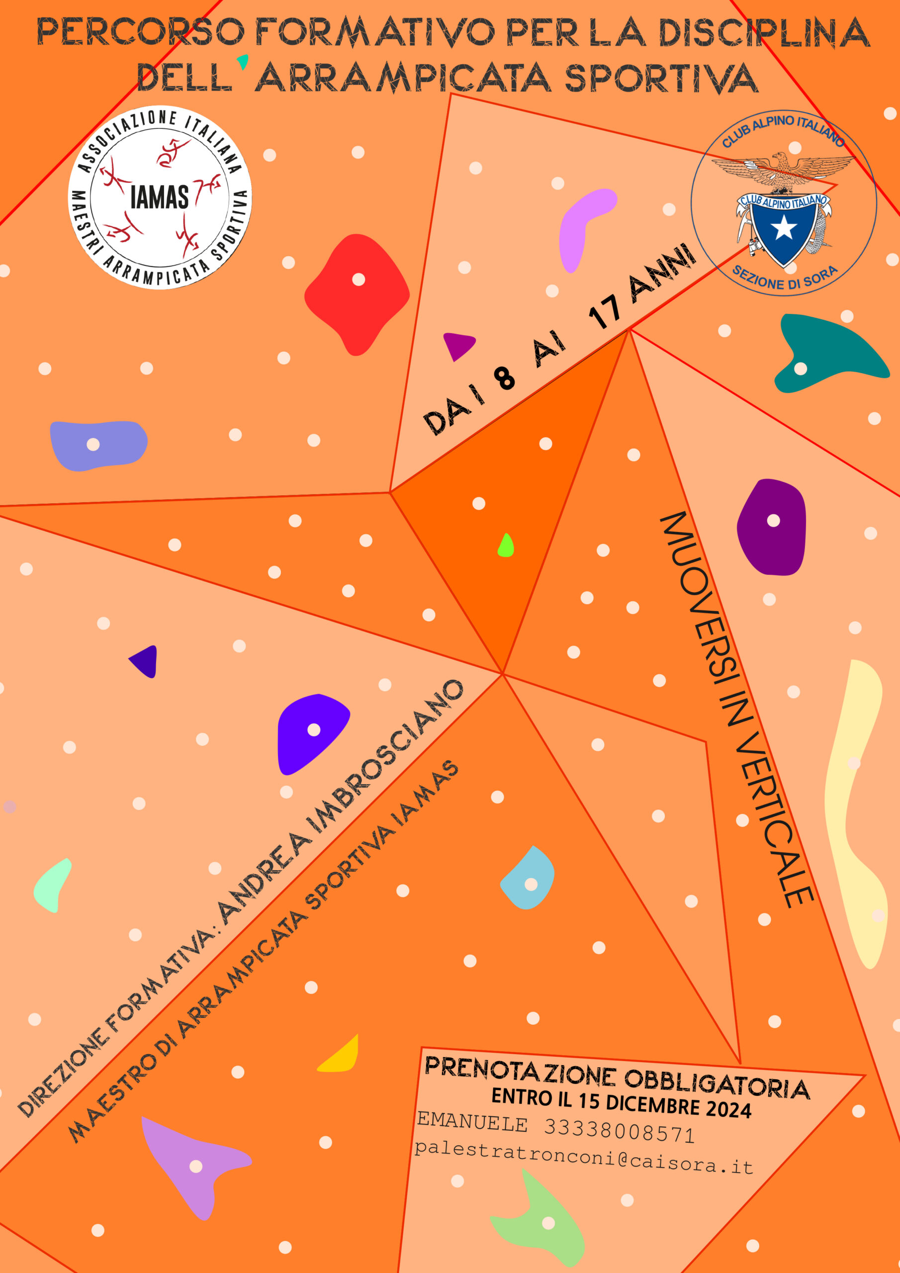 Il Club Alpino Italiano sezione di Sora con la collaborazione dell’associazione Maestri di Arrampicata Sportiva IAMAS organizza a partire dal mese di Gennaio 2025 un percorso formativo dedicato alla disciplina dell’arrampicata sportiva, “Muoversi in verticale”