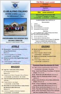 Scarica qui il nostro programma delle escursioni ——–> Programma Escursionistico 2° trimestre 2022
