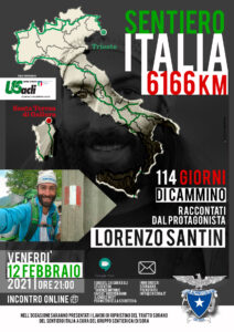 Carissimi soci e simpatizzanti con vero piacere comunico che dal mese di febbraio tornano gli imperdibili incontri culturali del CAI SORA una serie di appuntamenti per conoscere alcune storie di montagna a respiro internazionale. Si inizia venerdì 12 febbraio con una serata “virtuale” dedicata al SENTIERO ITALIA. Ospite d’onore LORENZO SANTIN il camminatore friulano che nel 2017 per primo ha percorso in solitaria i 6.166 chilometri del Sentiero Italia. Il racconto di un’impresa straordinaria che sarà anche occasione di presentare i lavori di ripristino del tratto sorano del SI uno dei più belli del centro Italia.